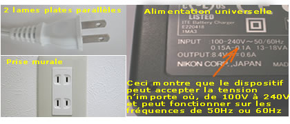 tension (100V ~ 240V) et à différentes fréquences électriques (soit 50Hz ou 60Hz), dans ce cas, tout ce dont vous avez besoin est un adaptateur